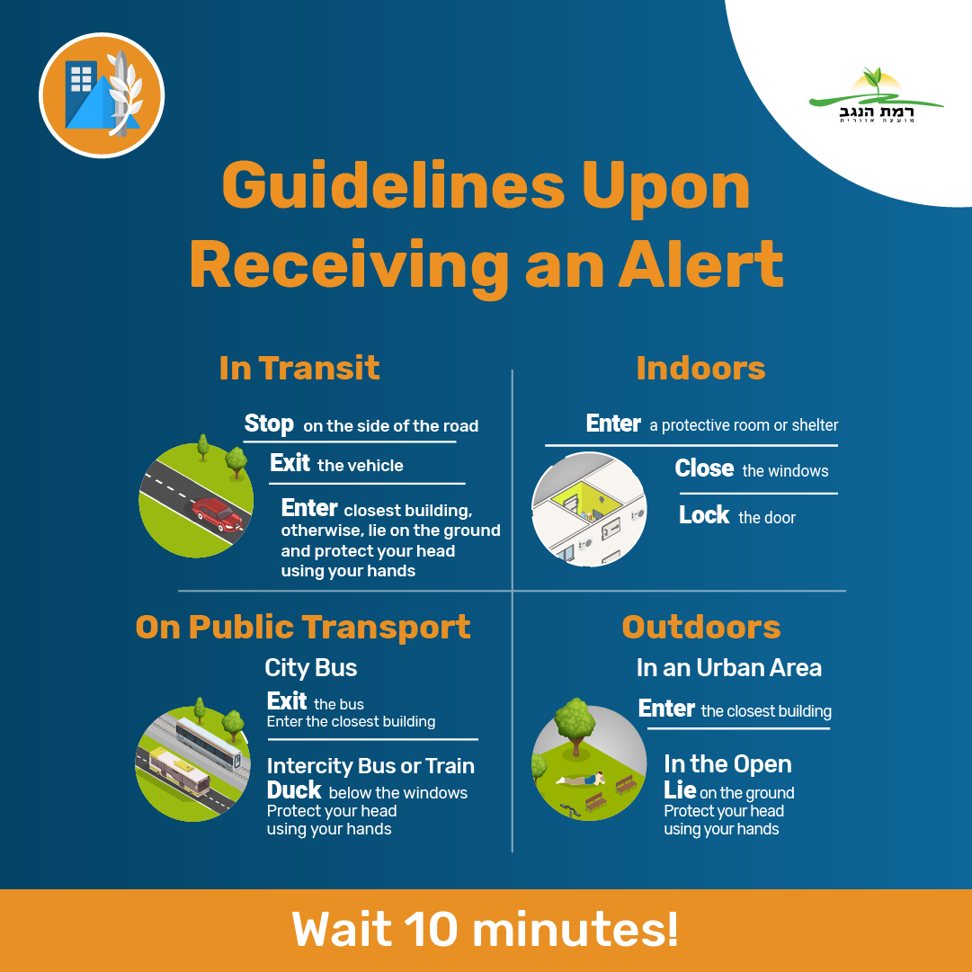 - Stay updated by following the Home Front Command's messages, published on the official platforms and media channels.